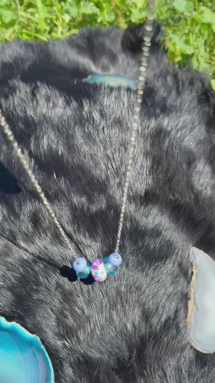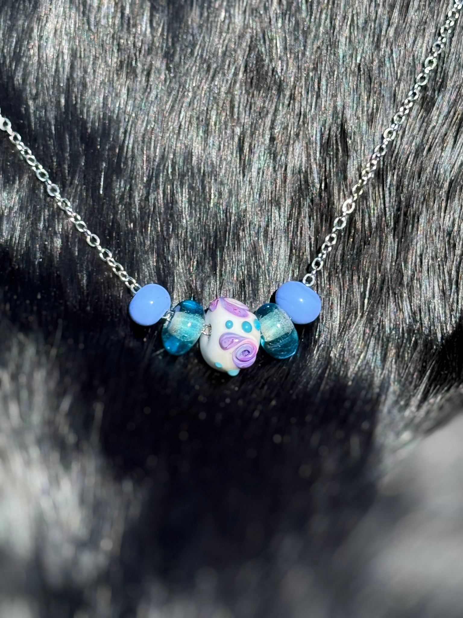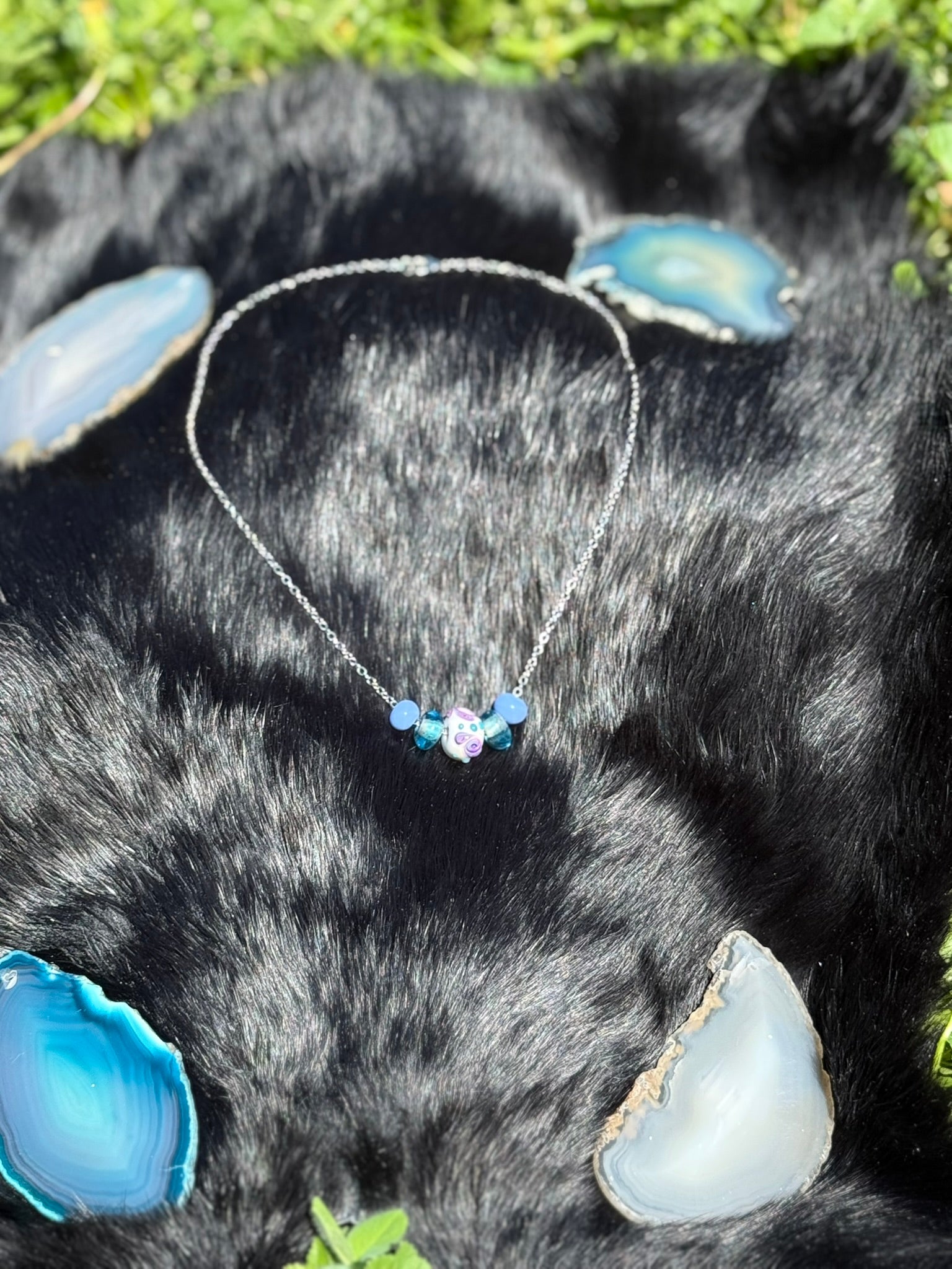 A timeless tribute, Aquatic Wonder features a delicate floral focal bead passed down through generations—lovingly repurposed from my Granny’s personal collection. Accented by soft blues and luminous aqua tones, this piece blooms with meaning. It’s more than just a necklace—it’s a living memory, handcrafted to carry warmth, whimsy, and legacy wherever you go.