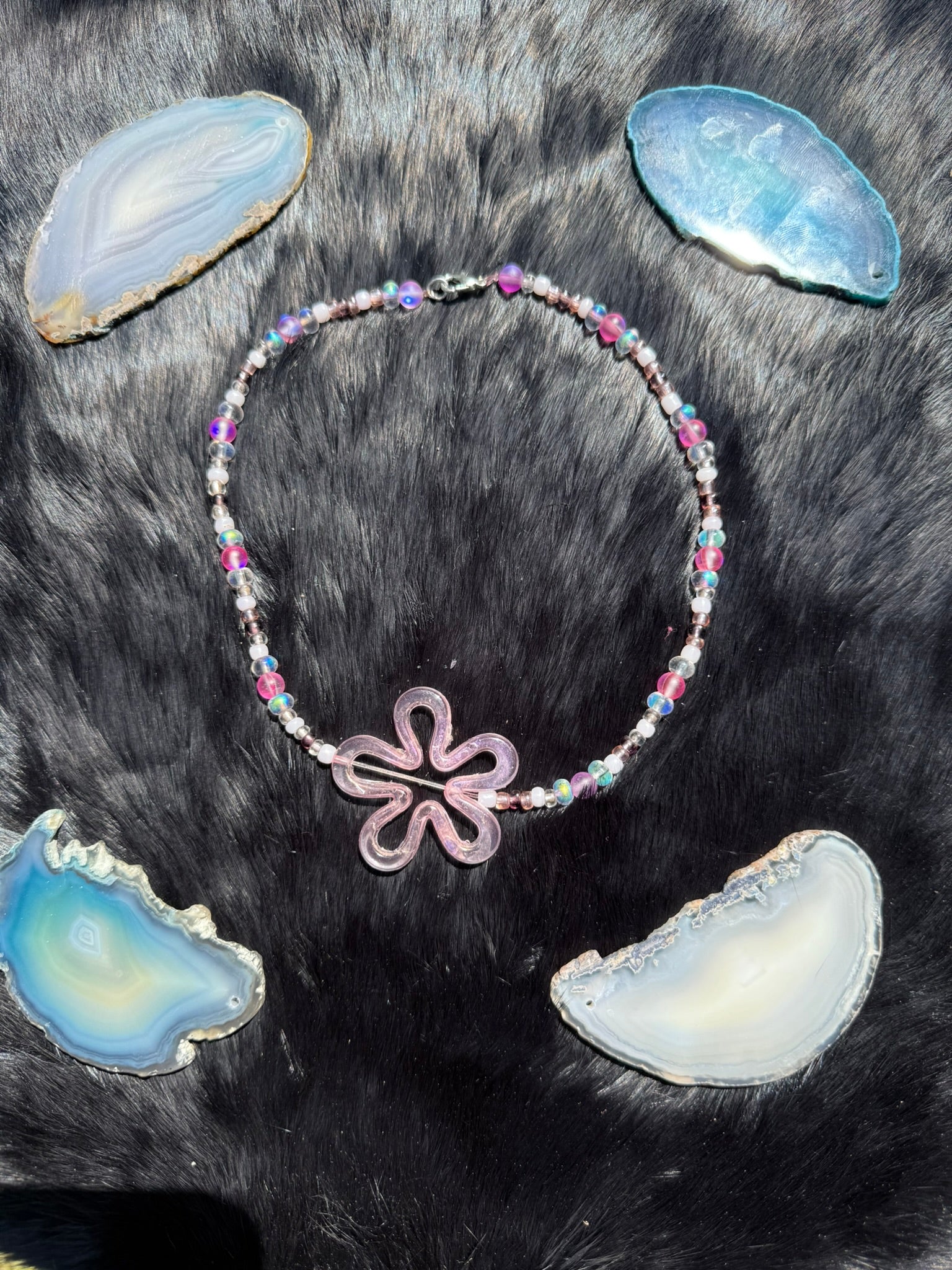 This chunky, color-pop cutie is giving flower disco realness. With holographic shine, bubblegum-pink beads, and a juicy flower focal, Funkadelic Flora is for the maximalists, the glitter lovers, and the dopamine dressers.