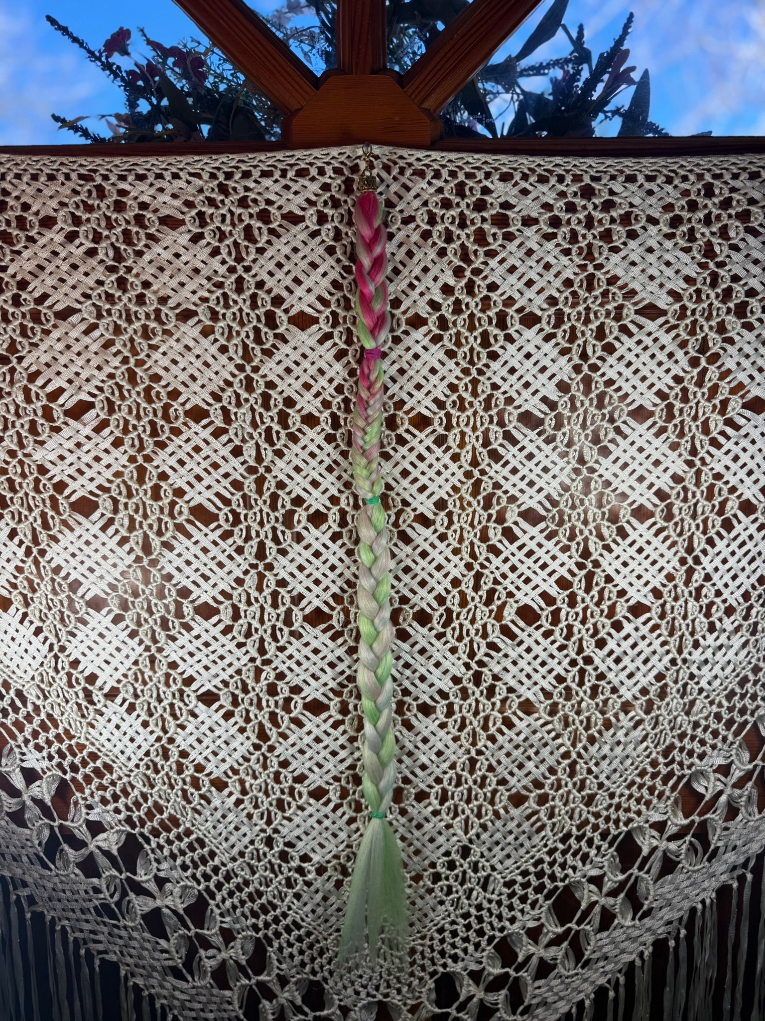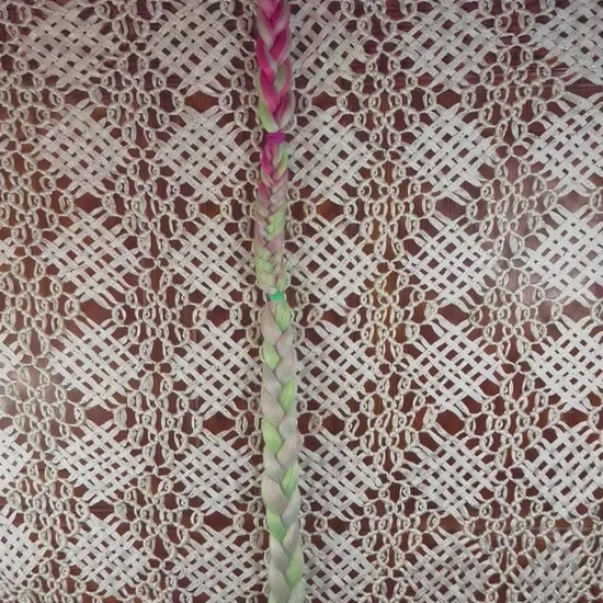 Neon Nectar blends radiant pink and soft mint green strands into a flowing braid that feels playful and full of floral energy. The bright colors catch the light with every movement, creating a look that feels both dreamy and electric.