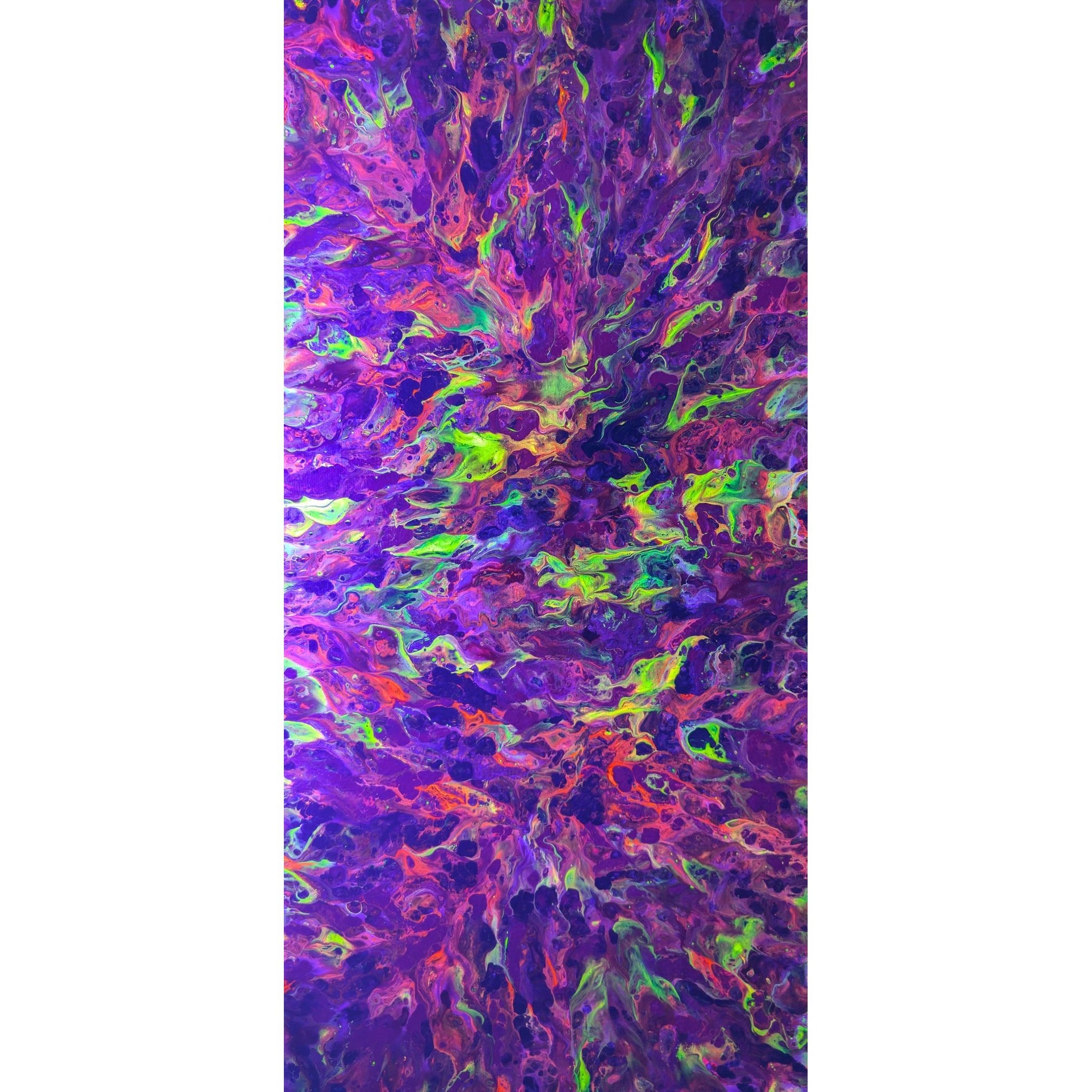 Ignite your senses with Psychedelic Inferno, a dazzling burst of color and energy from our Fluid Expression series. This vibrant piece radiates with electric hues of neon pink, fiery orange, and vivid green, all set against rich undertones of purple. The dynamic patterns evoke the chaotic beauty of flames and molten energy, swirling in a hypnotic dance that feels alive and untamed.
