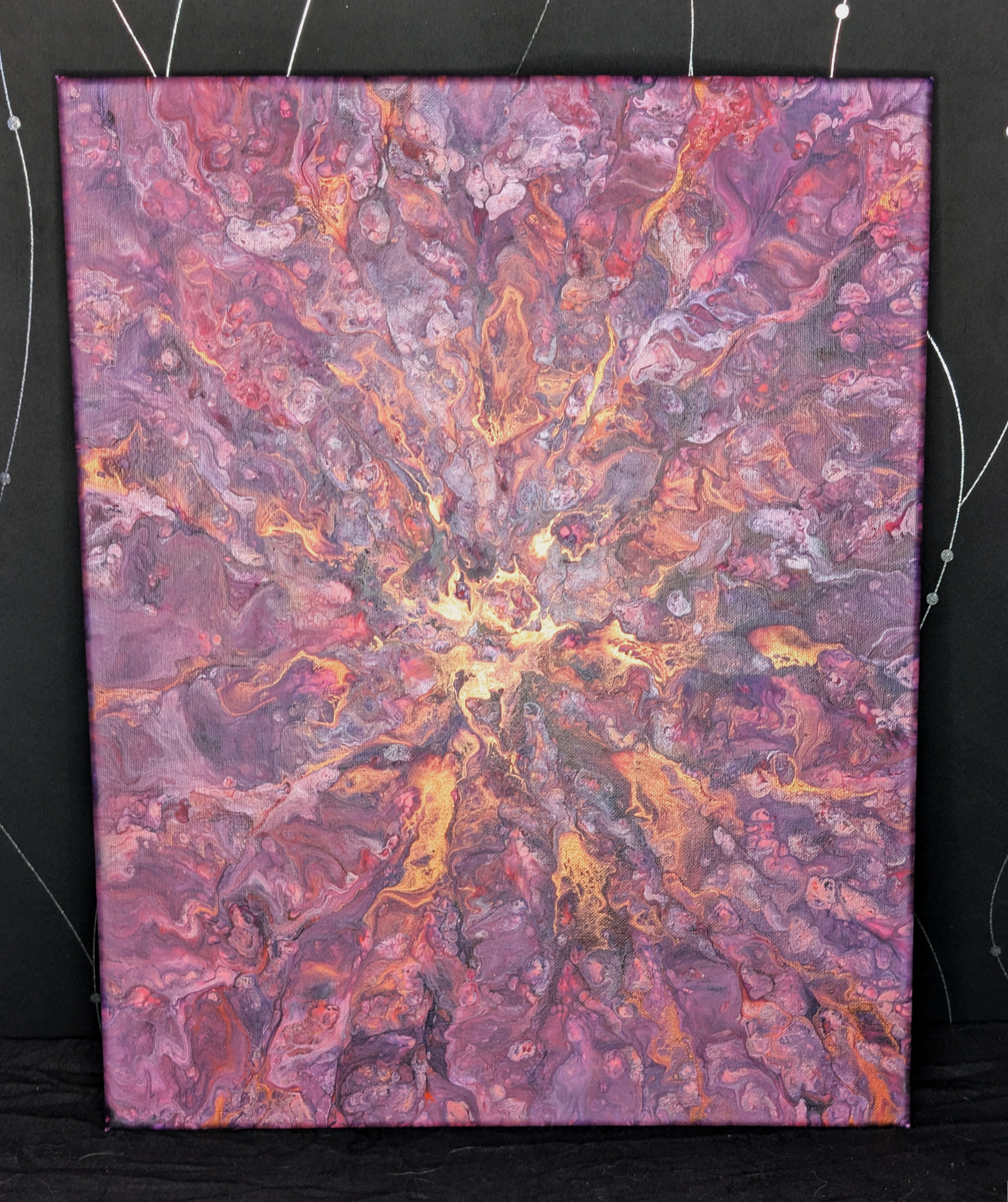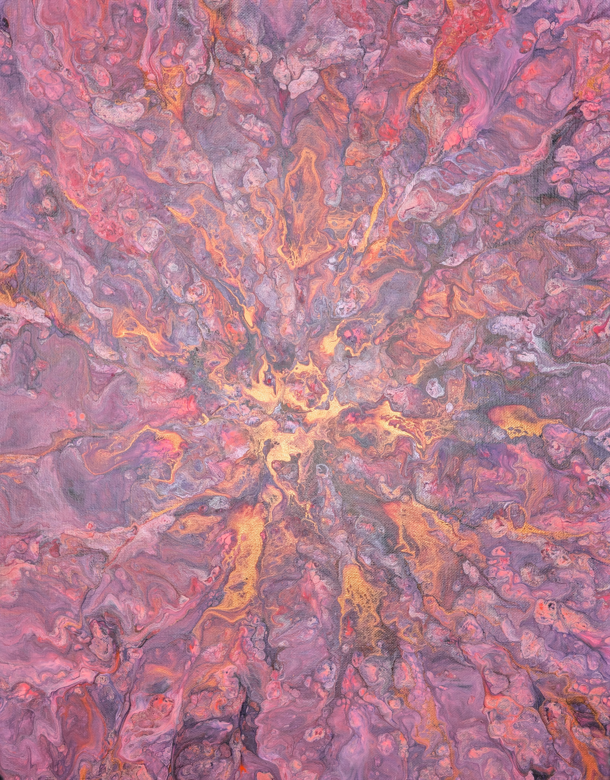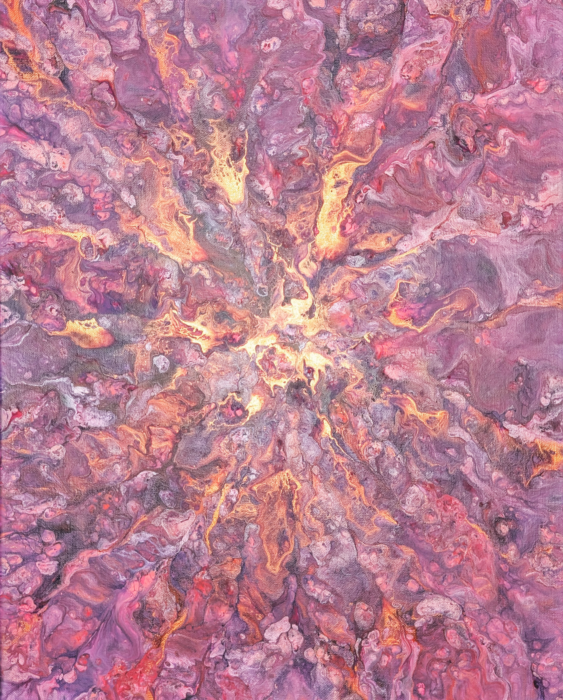 Experience the subtle beauty of Radiant Bloom, a graceful piece from our Fluid Expression series. Soft, rosy pinks and earthy golds radiate from the center, creating an organic, blooming effect that draws the eye inward. The gentle flow of colors evokes the unfolding petals of a mystical flower, capturing a moment of delicate growth and vibrant energy. With its warm, calming palette, Radiant Bloom brings a serene elegance to any space, inviting you to pause and appreciate the quiet beauty of transformation.
