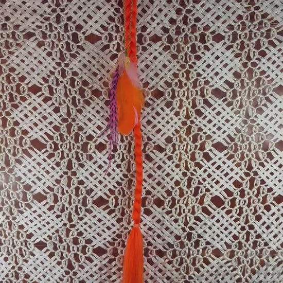 Solar Phoenix features a vibrant neon orange braid accented with feather details that move freely with every step and spin. Inspired by desert sunsets, fire dancers, and the unstoppable energy of festival nights, this extension brings instant color, movement, and attitude to any hairstyle.