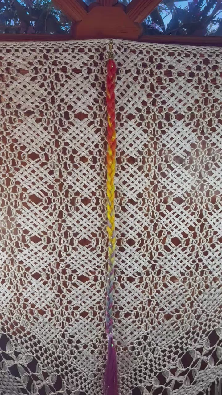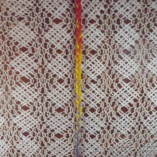 Inspired by the electric moment when the sun dips below the horizon and the music starts to rise, Sunset Pulse blends fiery reds, glowing oranges, radiant yellow, and vibrant magenta into one flowing braid.