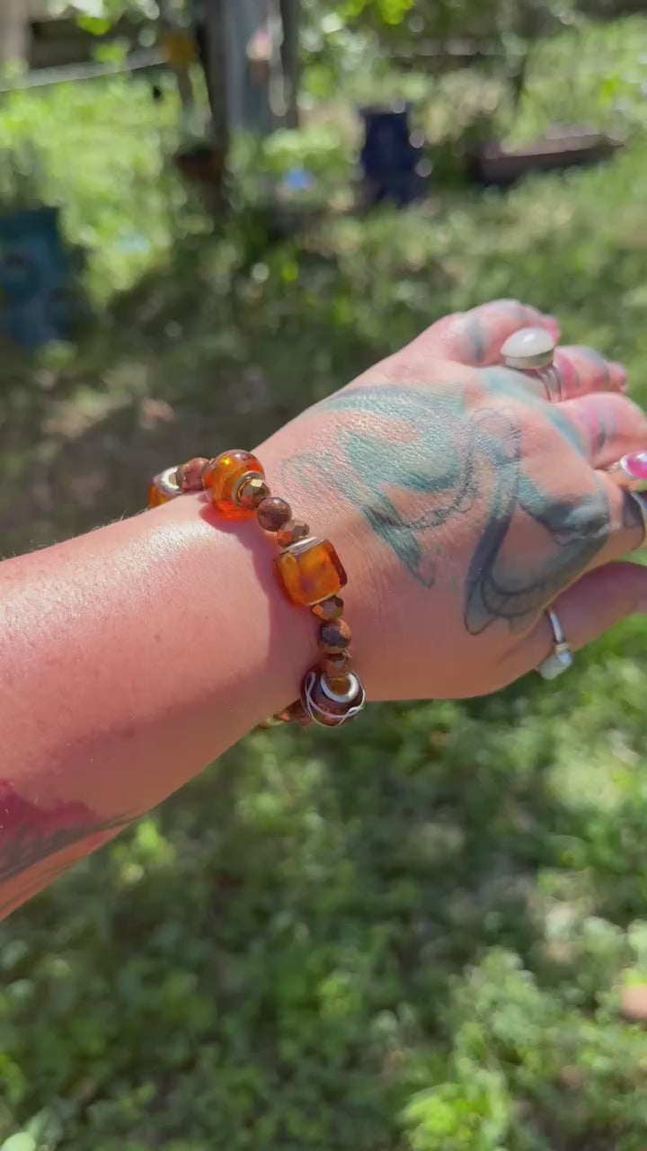 Blazing orange glass and molten shimmer beads roar with untamed energy. A bracelet that embodies fire, courage, and bold self-expression.