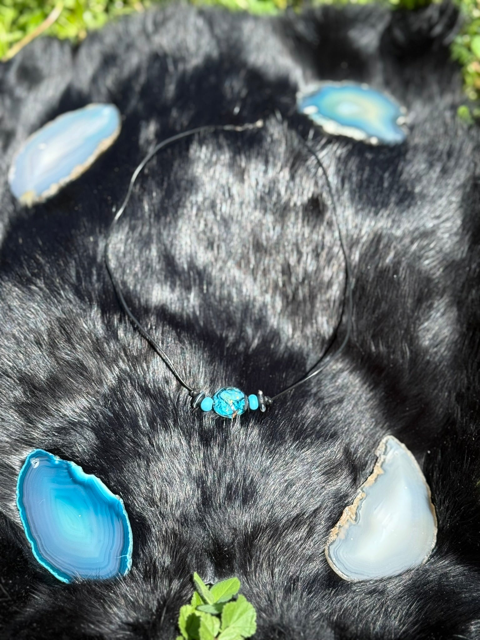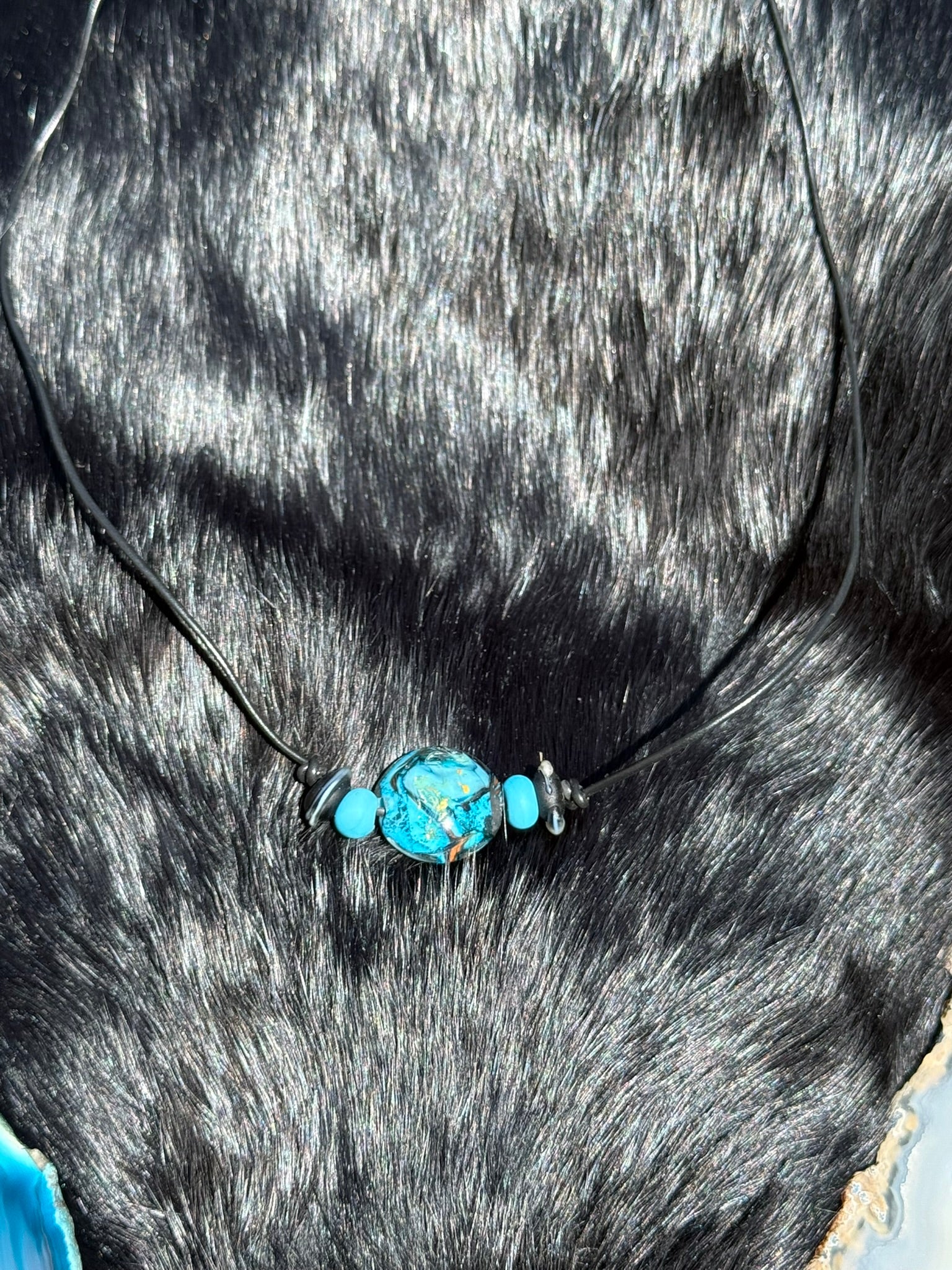 Riding that turquoise tide with a splash of sass. Wave Rider features a swirling ocean-glass center bead, black accents, and major beach-day energy. Pair it with flip-flops or your favorite flowy 'fit and ride the good vibes.